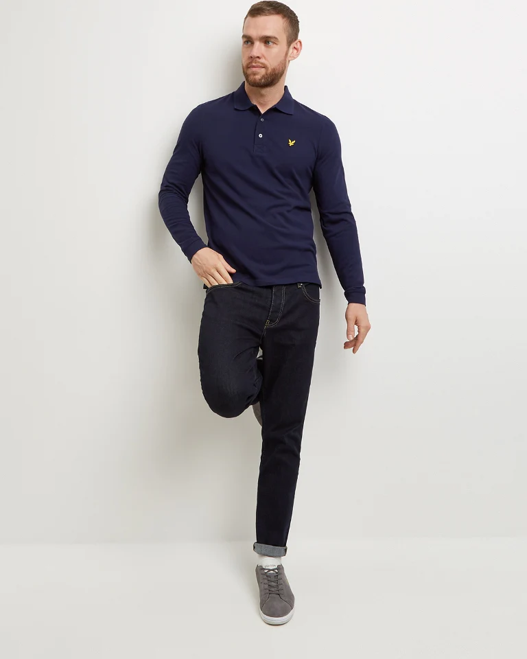 Lyle & Scott Long Sleeved Polo in Navy