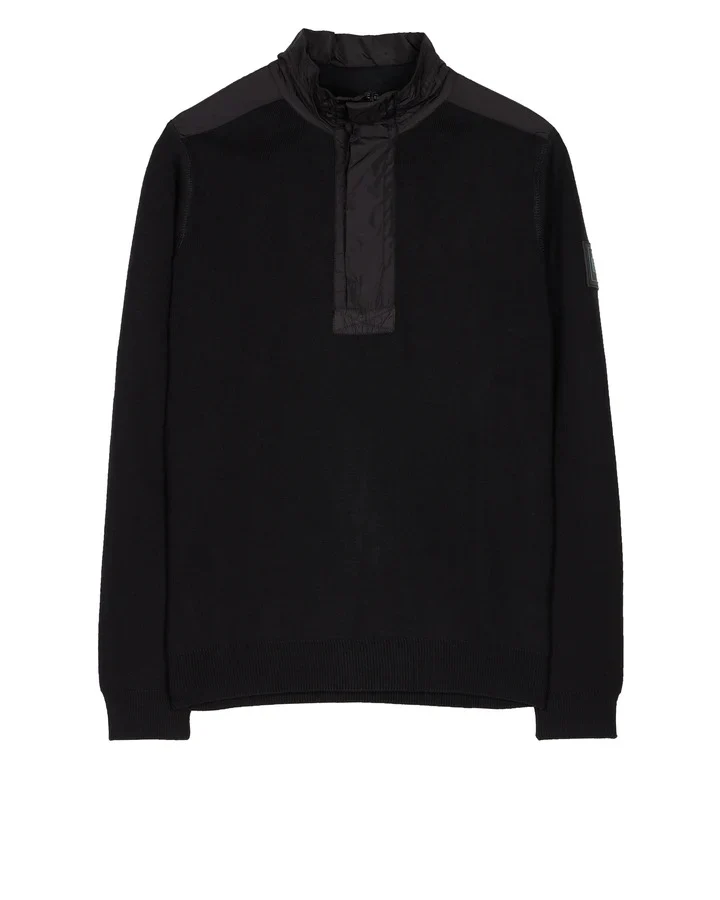 â–ª Knitted Quarter-Zip Top With Fluid Nylon Overlay